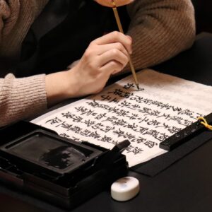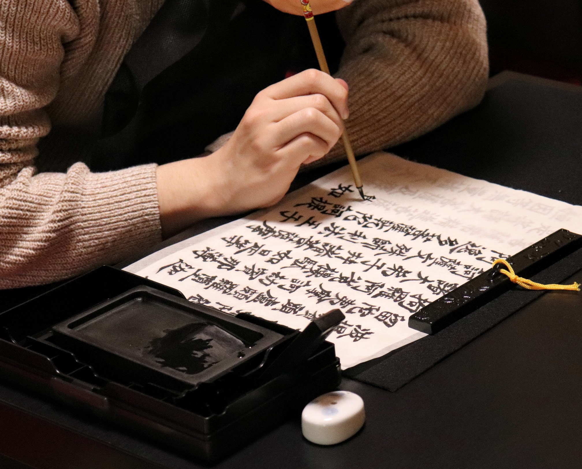運慶願経奥書第8巻に倣った作法で行う写経体験。