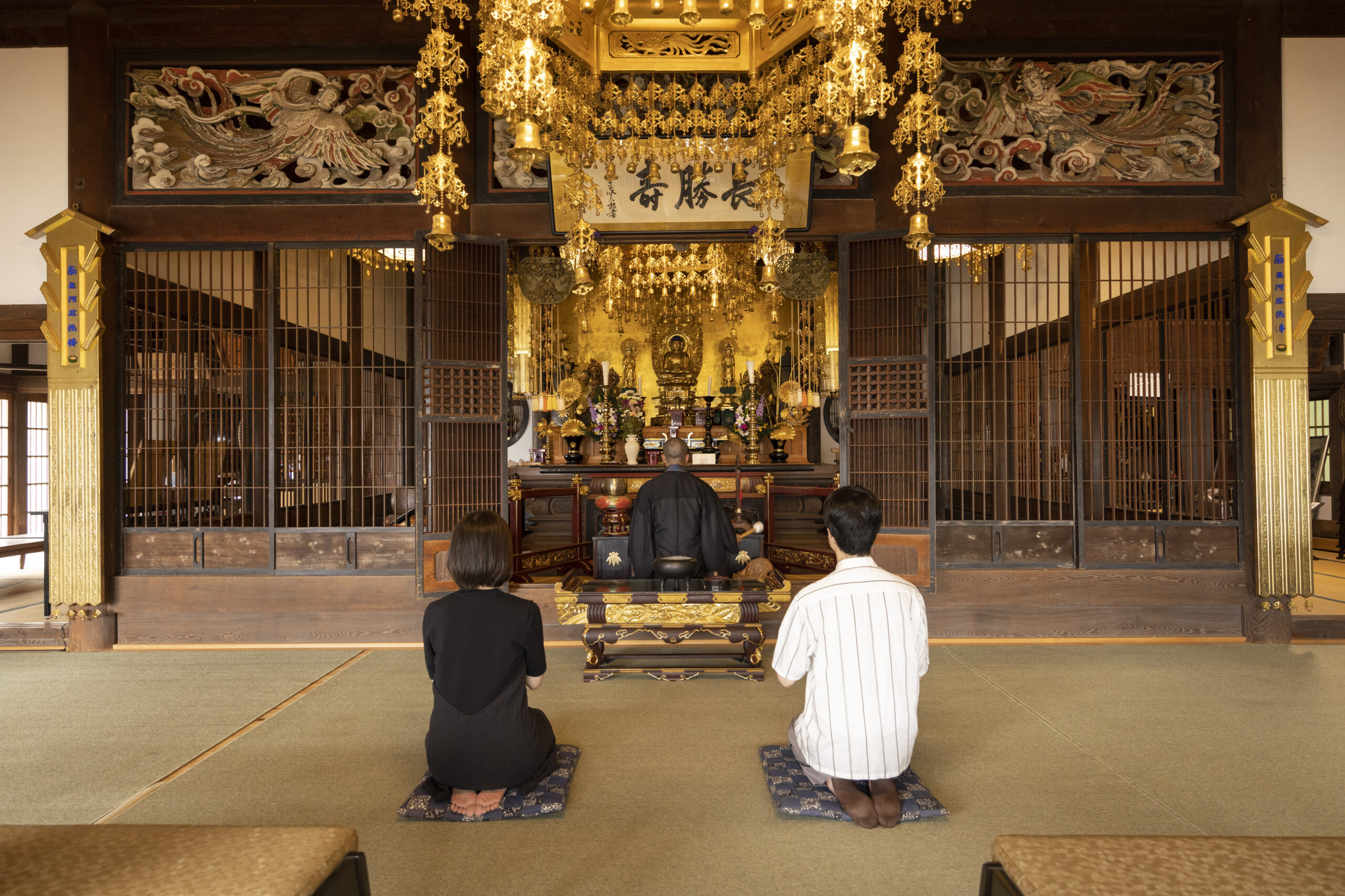江戸時代建立・築350年の本堂にて、浄土宗式のお勤めを行います。