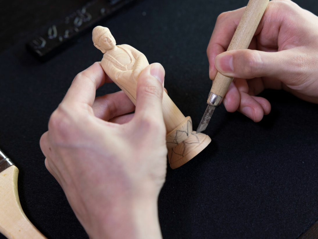 あらかじめ描かれた絵柄から好きなものを選び、彫刻を行います。